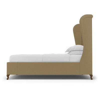 This soft, sweeping and rolled bed frame is a modern update to a classic shelter and wingback bed. The tailored bed with piping detail, rests on solid queen anne feet that acenuate the curves of the silhouette.