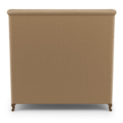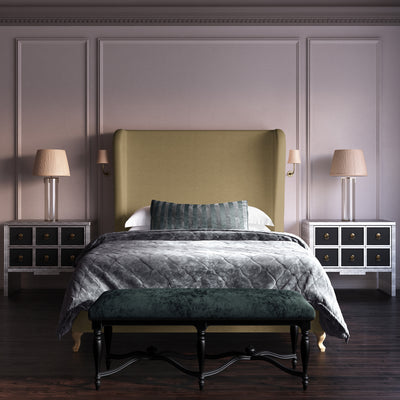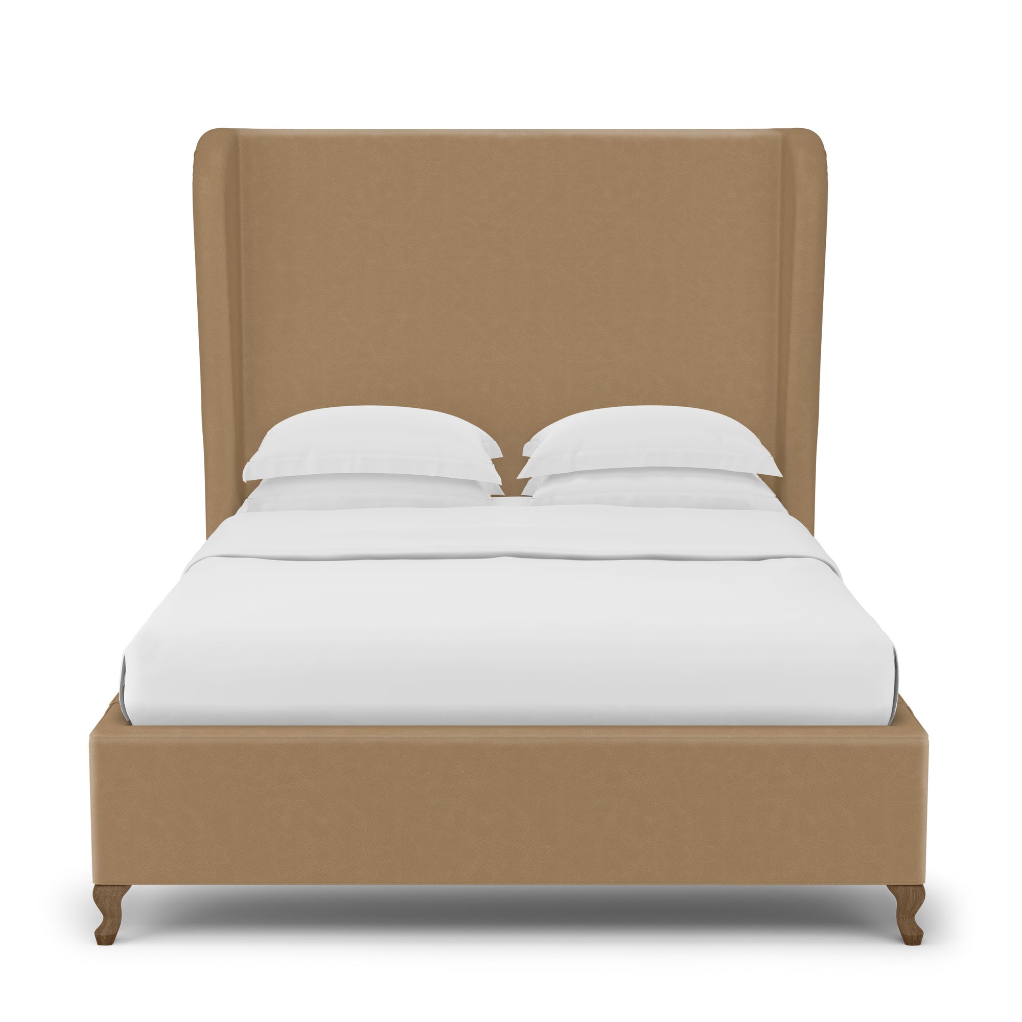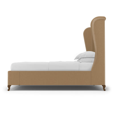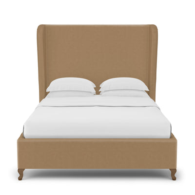 This soft, sweeping and rolled bed frame is a modern update to a classic shelter and wingback bed. The tailored bed with piping detail, rests on solid queen anne feet that acenuate the curves of the silhouette.