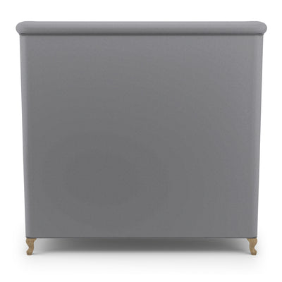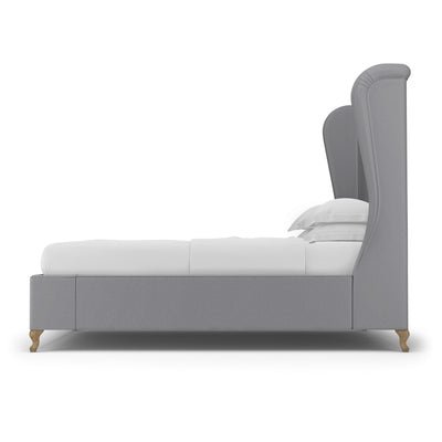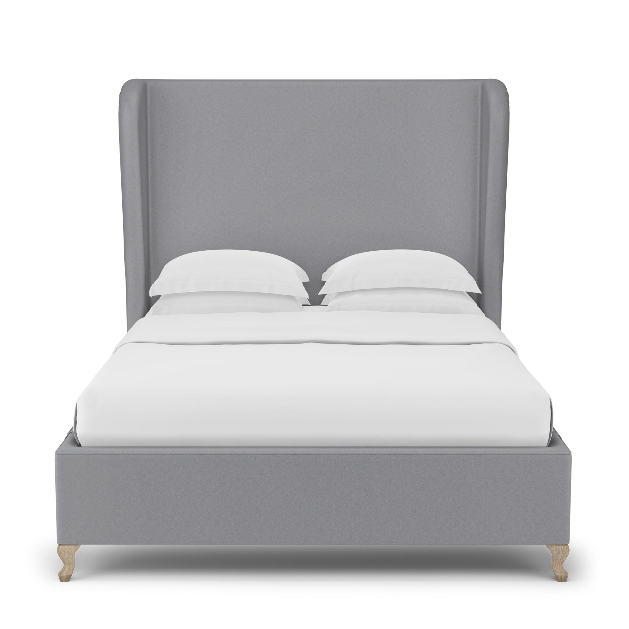 This soft, sweeping and rolled bed frame is a modern update to a classic shelter and wingback bed. The tailored bed with piping detail, rests on solid queen anne feet that acenuate the curves of the silhouette.
