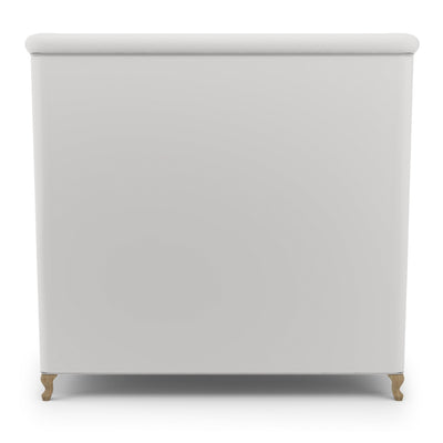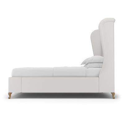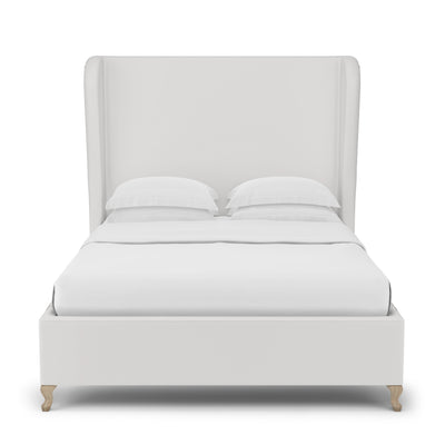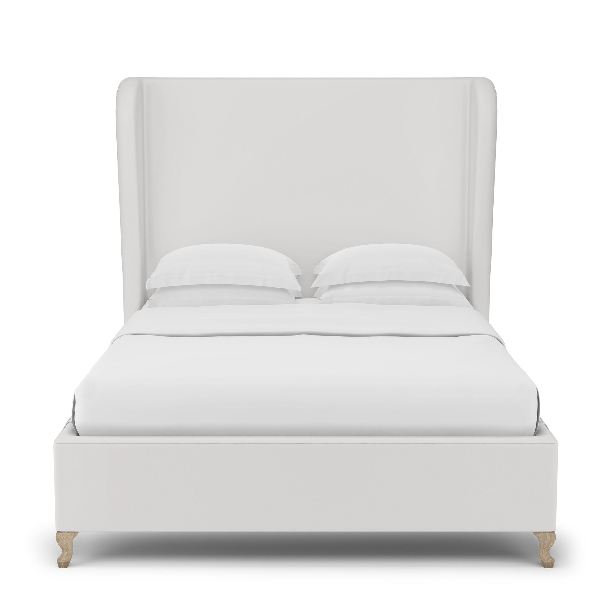 This soft, sweeping and rolled bed frame is a modern update to a classic shelter and wingback bed. The tailored bed with piping detail, rests on solid queen anne feet that acenuate the curves of the silhouette.
