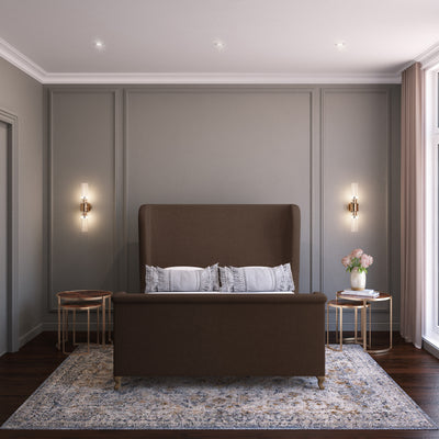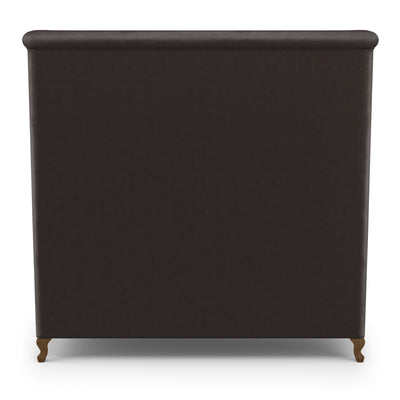 This soft, sweeping and rolled bed frame is a modern update to a classic shelter and wingback bed. The tailored bed with piping detail, rests on solid queen anne feet that acenuate the curves of the silhouette.