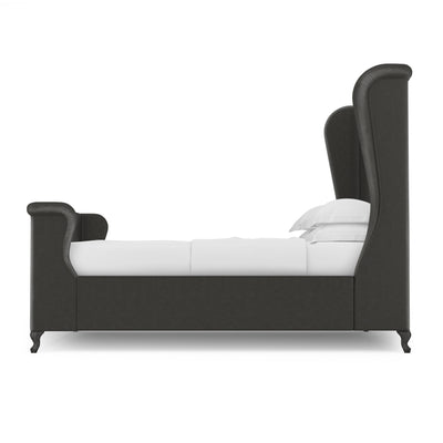 This soft, sweeping and rolled bed frame is a modern update to a classic shelter and wingback bed. The tailored bed with piping detail, rests on solid queen anne feet that acenuate the curves of the silhouette.