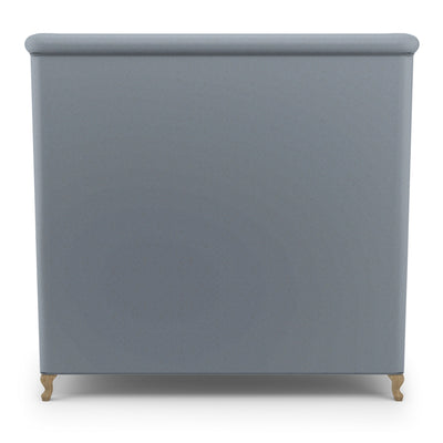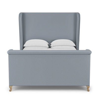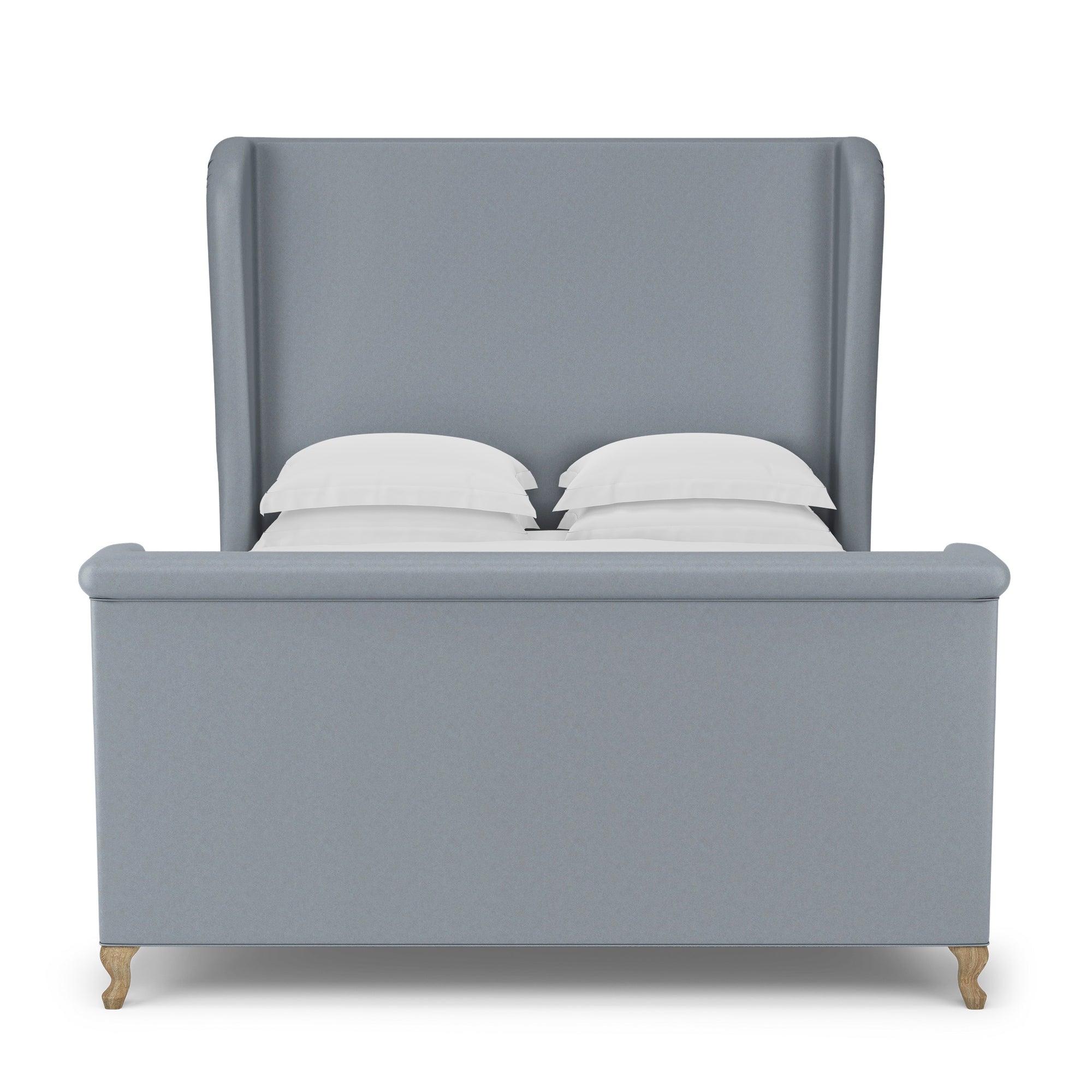 This soft, sweeping and rolled bed frame is a modern update to a classic shelter and wingback bed. The tailored bed with piping detail, rests on solid queen anne feet that acenuate the curves of the silhouette.