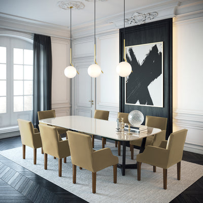 A sophisticated arm chair with a grand appeal and a refined edge that keeps it modern. The Juliet is grounded by solid square legs, while the curves along the arm rest keep it airy and comfortable.