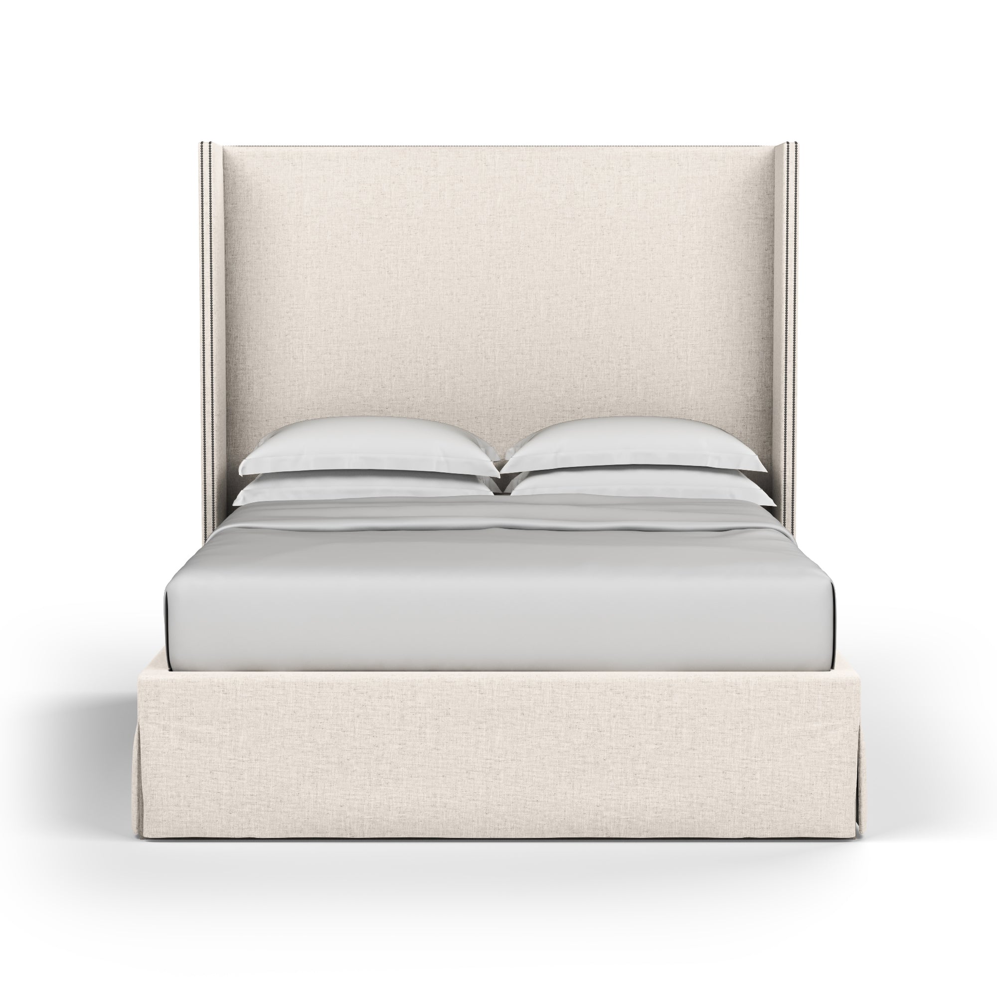 This modern shelter bed possesses smooth edges and clean geometric lines that magnify its calculated simplicity. Enhanced with a double row of nailhead trim, and a fitted waterfall skirt, these details add a polished flair.