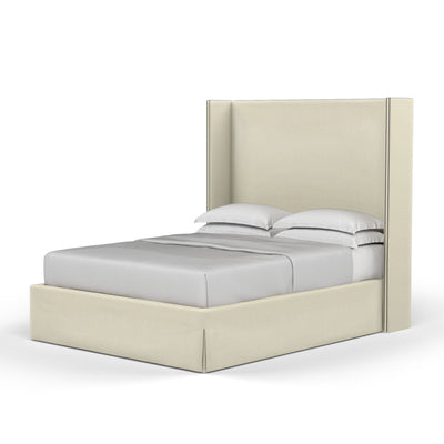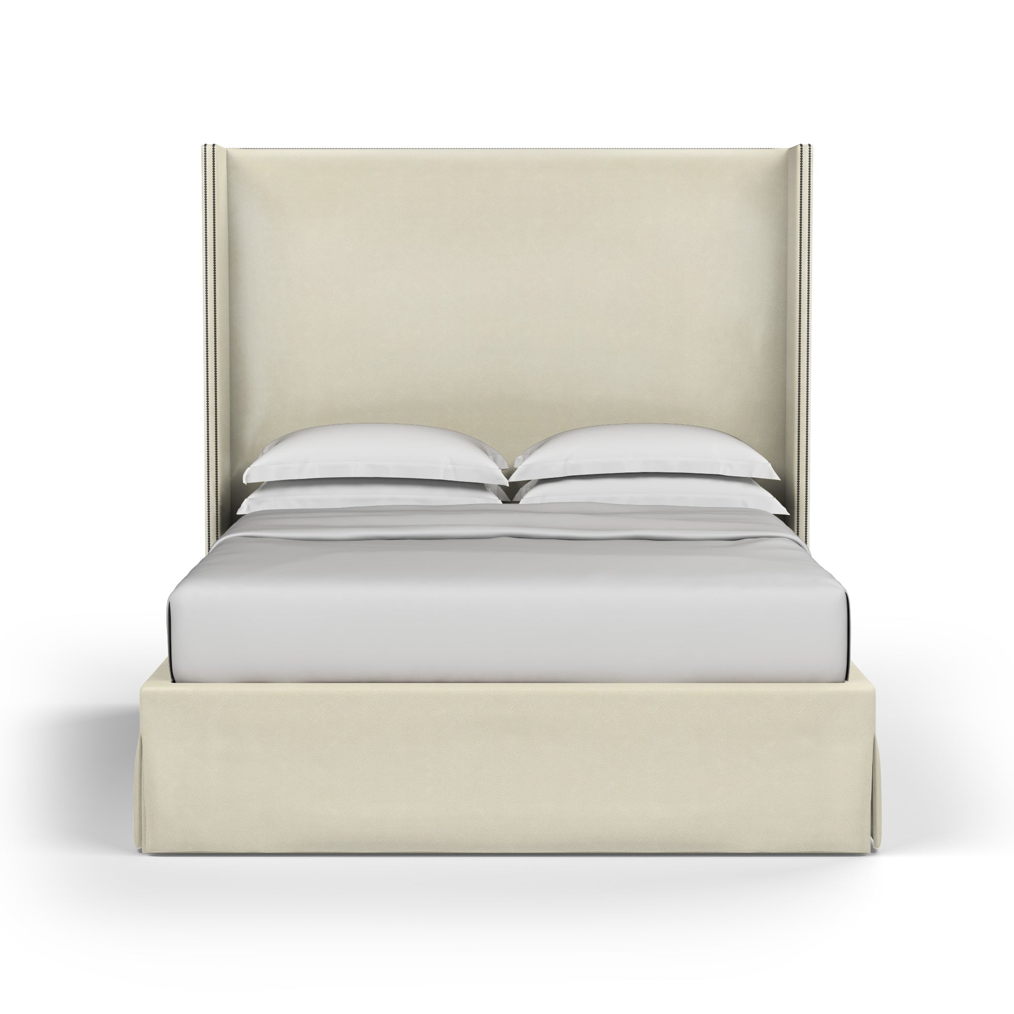 This modern shelter bed possesses smooth edges and clean geometric lines that magnify its calculated simplicity. Enhanced with a double row of nailhead trim, and a fitted waterfall skirt, these details add a polished flair.