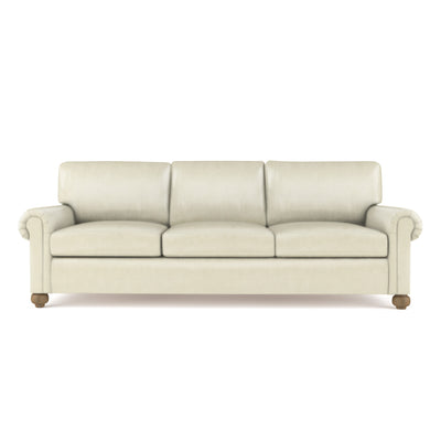 Designed for comfort, the Leroy Sofa harnesses the best of traditional sofa features in a silhouette that works for today’s interiors. Ideal for relaxed family lifestyles, it is divided by casual and cozy loose back cushions. Turned wooden feet and roll arms echo its pleasantly rounded profile.