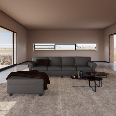 A solid piece of traditionally inspired modern furniture. The Leroy Table Ottoman compliments its contemporary look with time-honored craftsman details such as wood bun feet. Its cleanly rounded rectangular form has comfortable curves. Use it as a tray table, footrest, or as extra seating to extend your sofa.