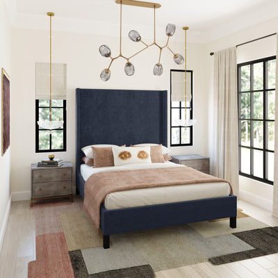 Lincoln Shelter Bed - Blue Print Plush Velvet