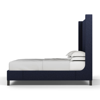 A stately silhouette with clean angular lines, this sleigh bed is the archetype of a traditional design with a mid-century vibe. Featuring a sleek headboard with lush padding and a tailored finish.
