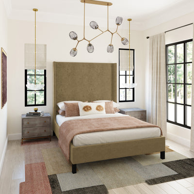 A stately silhouette with clean angular lines, this sleigh bed is the archetype of a traditional design with a mid-century vibe. Featuring a sleek headboard with lush padding and a tailored finish.