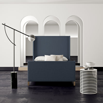 A stately silhouette with clean angular lines, this sleigh bed is the archetype of a traditional design with a mid-century vibe. Featuring a sleek headboard with lush padding and a tailored finish.