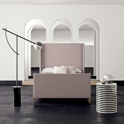 A stately silhouette with clean angular lines, this sleigh bed is the archetype of a traditional design with a mid-century vibe. Featuring a sleek headboard with lush padding and a tailored finish.