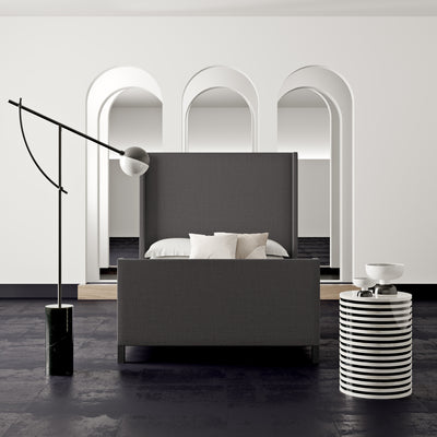 A stately silhouette with clean angular lines, this sleigh bed is the archetype of a traditional design with a mid-century vibe. Featuring a sleek headboard with lush padding and a tailored finish.