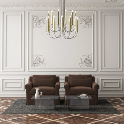 Depend on the Ludlow Chair for solid comfort and design. Its sleek form combines a traditional waterfall skirt with a roll-arm surrounding its comfortably rounded seat. A rectangular throw pillow provides extra back support.