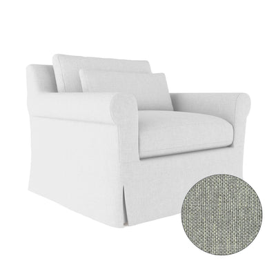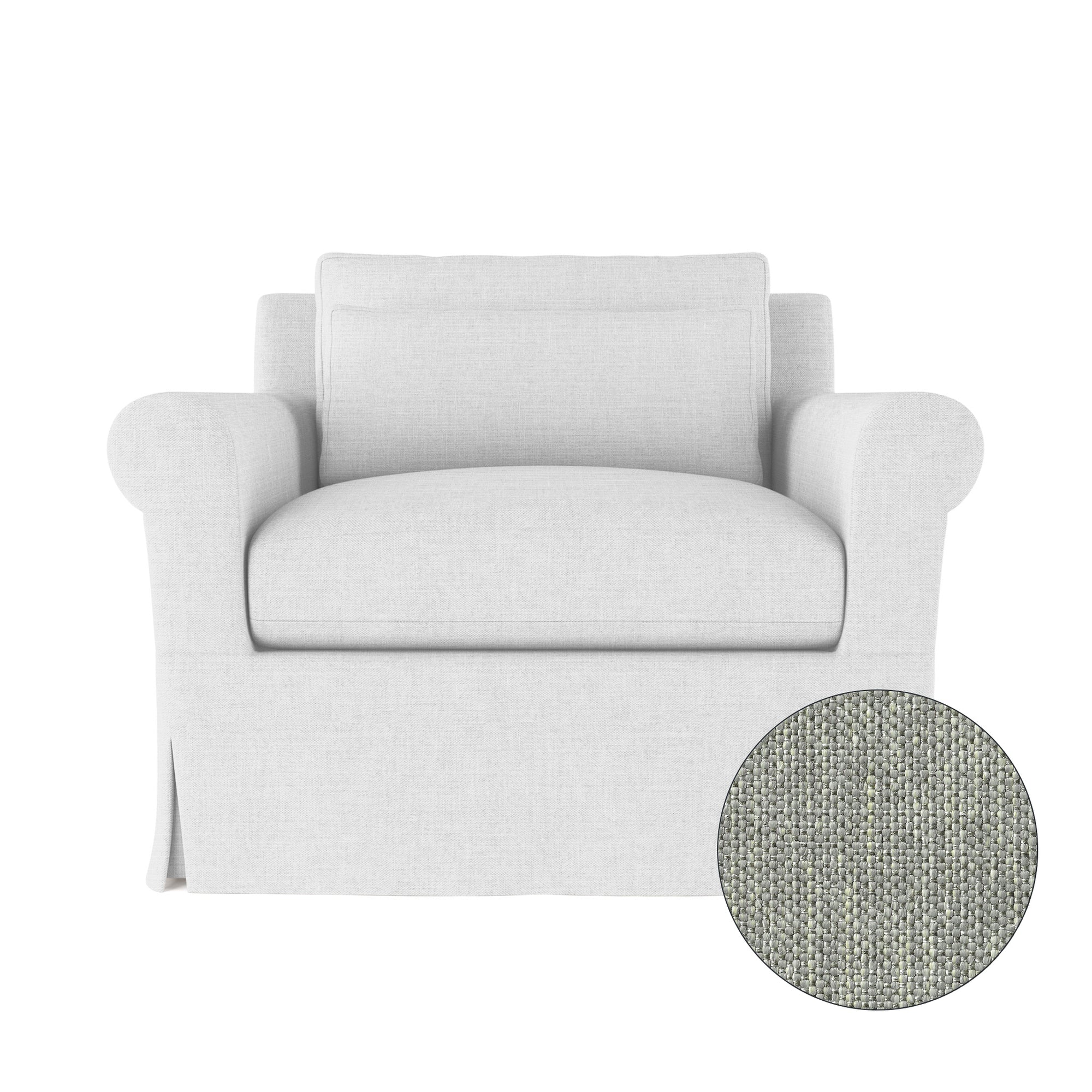 Depend on the Ludlow Chair for solid comfort and design. Its sleek form combines a traditional waterfall skirt with a roll-arm surrounding its comfortably rounded seat. A rectangular throw pillow provides extra back support.