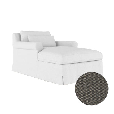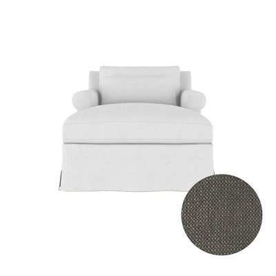 The Ludlow Chaise pairs the comforts of traditional design with striking modern features. Enjoy the ease of its elongated single bench seat and back-supporting cushion, surrounded by traditional roll-arms and a waterfall skirt.