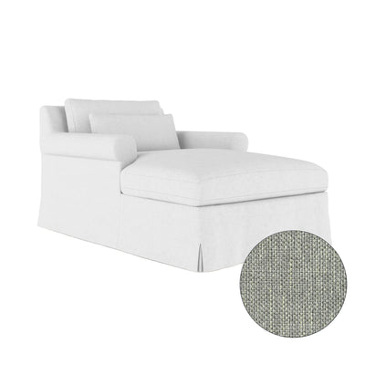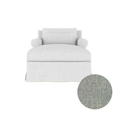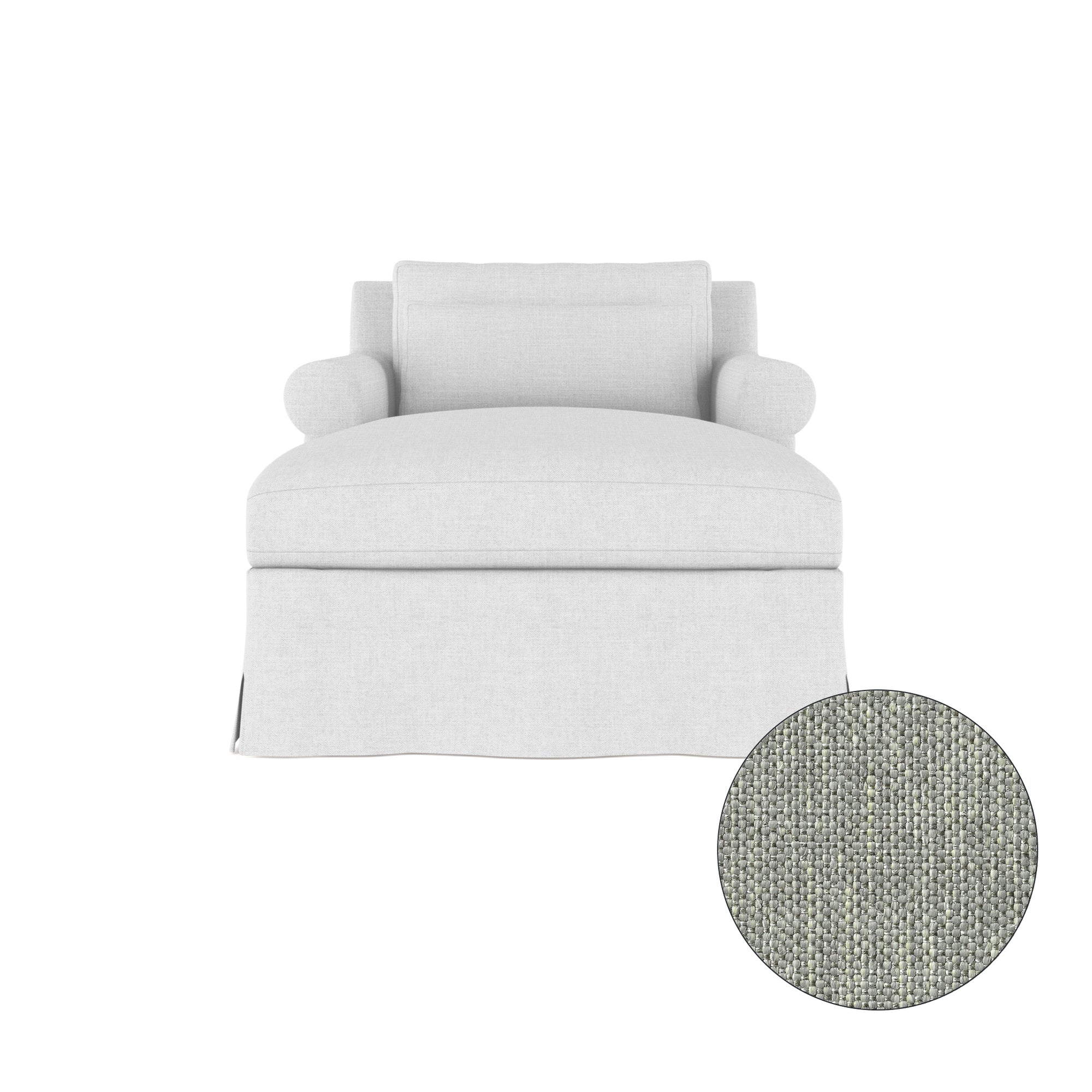 The Ludlow Chaise pairs the comforts of traditional design with striking modern features. Enjoy the ease of its elongated single bench seat and back-supporting cushion, surrounded by traditional roll-arms and a waterfall skirt.