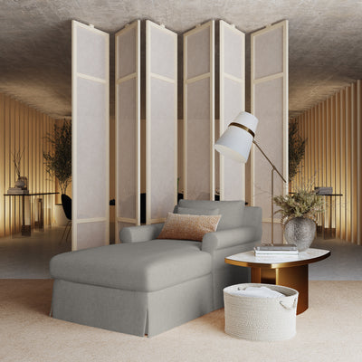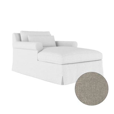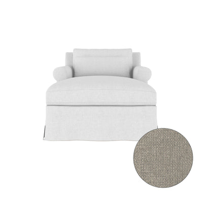 The Ludlow Chaise pairs the comforts of traditional design with striking modern features. Enjoy the ease of its elongated single bench seat and back-supporting cushion, surrounded by traditional roll-arms and a waterfall skirt.