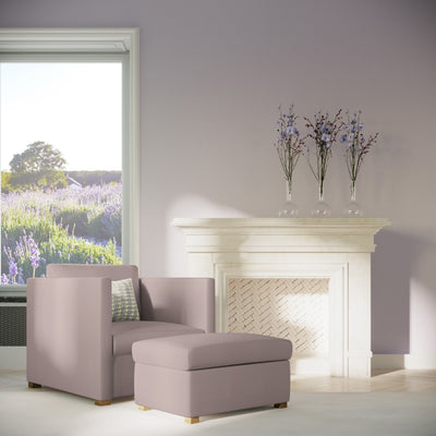 A handsome companion to the Madison seating collection, this ottoman makes an equally lovely accent piece to mix with other furniture thanks to its elegant, versatile design. A thick rounded base is topped with a thinner cushion, slightly proud and overstuffed, for relaxed comfort in traditional or modern spaces.