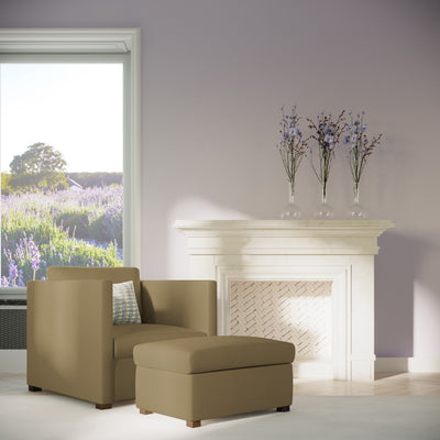 A handsome companion to the Madison seating collection, this ottoman makes an equally lovely accent piece to mix with other furniture thanks to its elegant, versatile design. A thick rounded base is topped with a thinner cushion, slightly proud and overstuffed, for relaxed comfort in traditional or modern spaces.