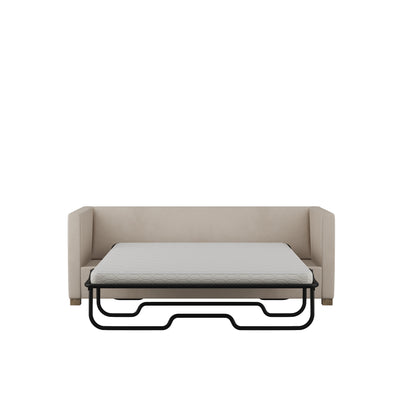The Madison Sleeper Sofa beautifies any interior style with its clean-lined sophistication. The low, deep profile is modest and refined with its narrow arms and slim profile. When ready, the sleeper seamlessly pulls out to a cushy, memory foam mattress, instantly creating an additional bed.