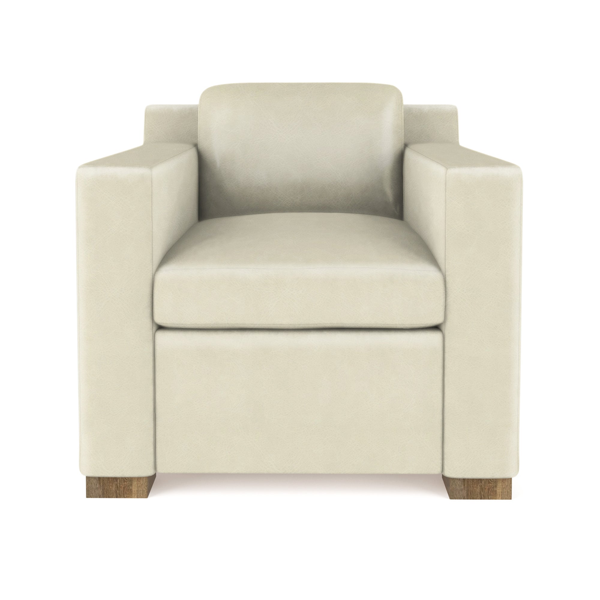 Super-comfortable and serious about style, the Mercer Chair is a solidly designed piece that will last a lifetime. The gently rounded curves of this cubed chair hint at a traditional past, while serving the needs of modern life. Low, square wooden feet complete the look.
