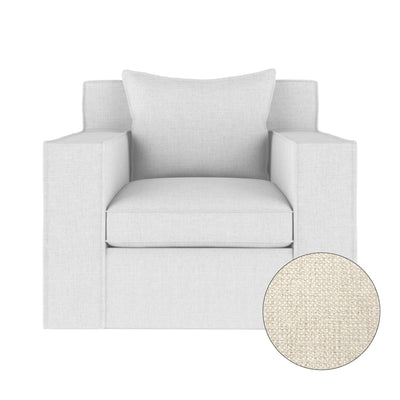 A bold, modern silhouette, the Mulberry Chair offers enveloping comfort with its large track arms and sturdy square profile. Its low, informal silhouette delivers versatile seating for the modern home, complemented by a curved back cushion.