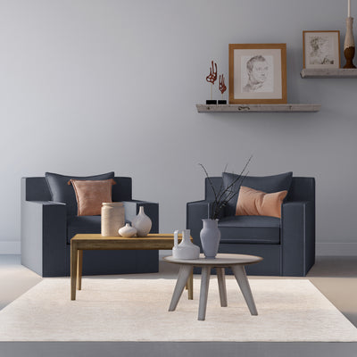 A bold, modern silhouette, the Mulberry Chair offers enveloping comfort with its large track arms and sturdy square profile. Its low, informal silhouette delivers versatile seating for the modern home, complemented by a curved back cushion.