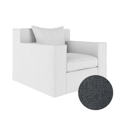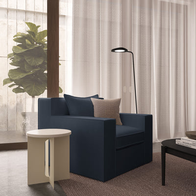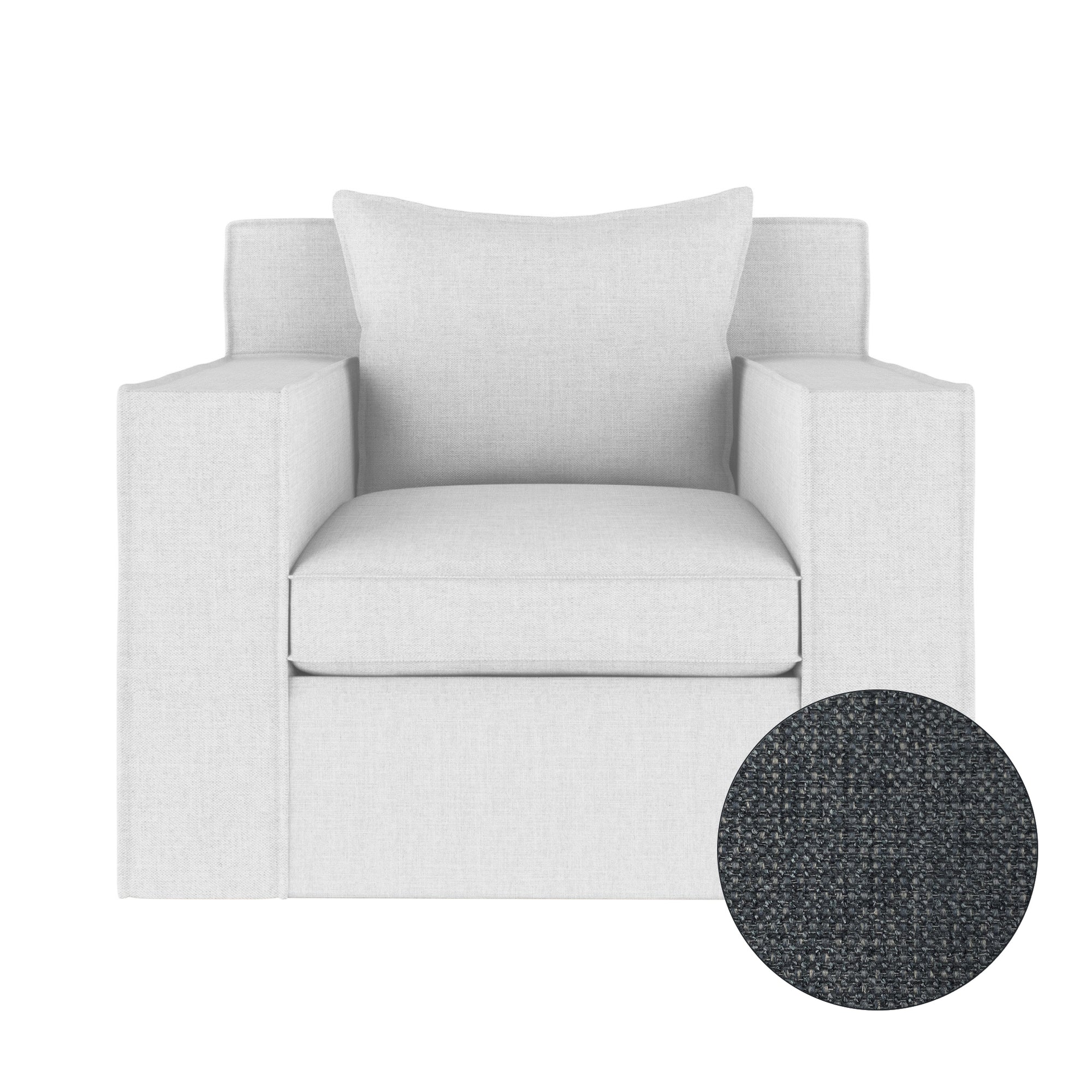 A bold, modern silhouette, the Mulberry Chair offers enveloping comfort with its large track arms and sturdy square profile. Its low, informal silhouette delivers versatile seating for the modern home, complemented by a curved back cushion.