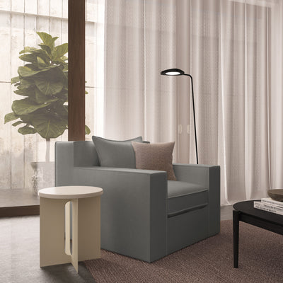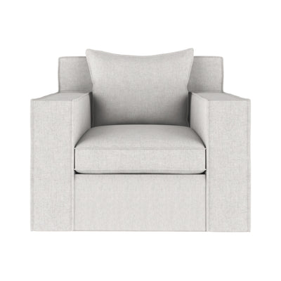 A bold, modern silhouette, the Mulberry Chair offers enveloping comfort with its large track arms and sturdy square profile. Its low, informal silhouette delivers versatile seating for the modern home, complemented by a curved back cushion.