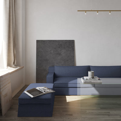 Mulberry Ottoman - Blue Print Box Weave Linen