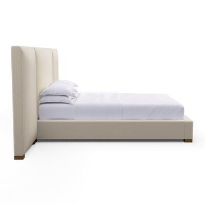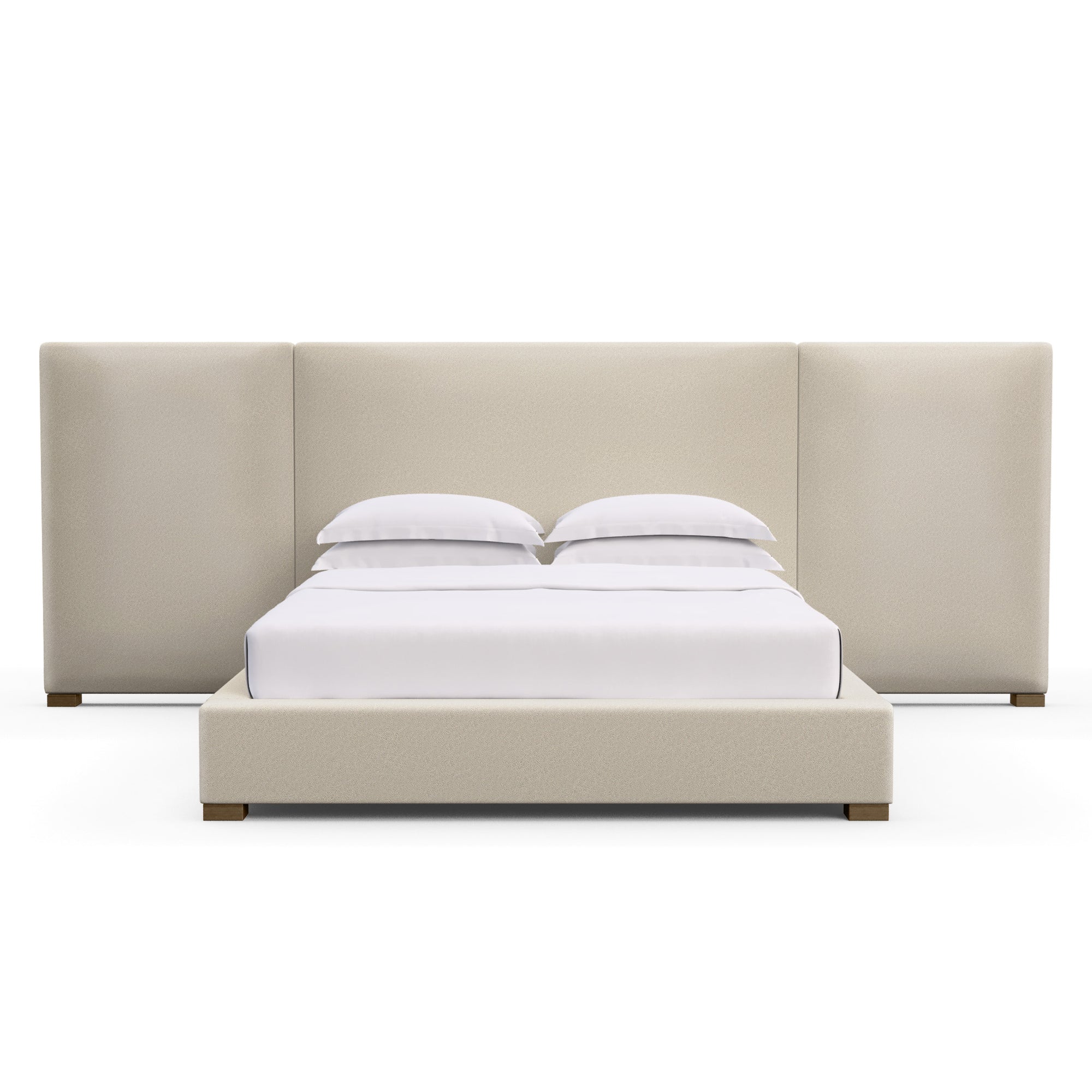 A play on balance and proportion, this platftorm bed is meant to be the centerpiece of your bedroom. The headboard, featuring crisp lines and handupholstered panels, extends on both sides to accommodate accent furniture. Anchored by square block feet, this piece is all about the sculptural details.