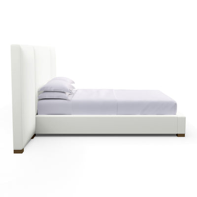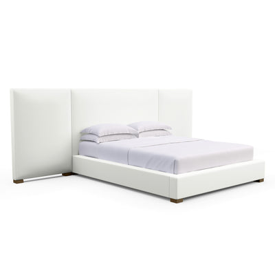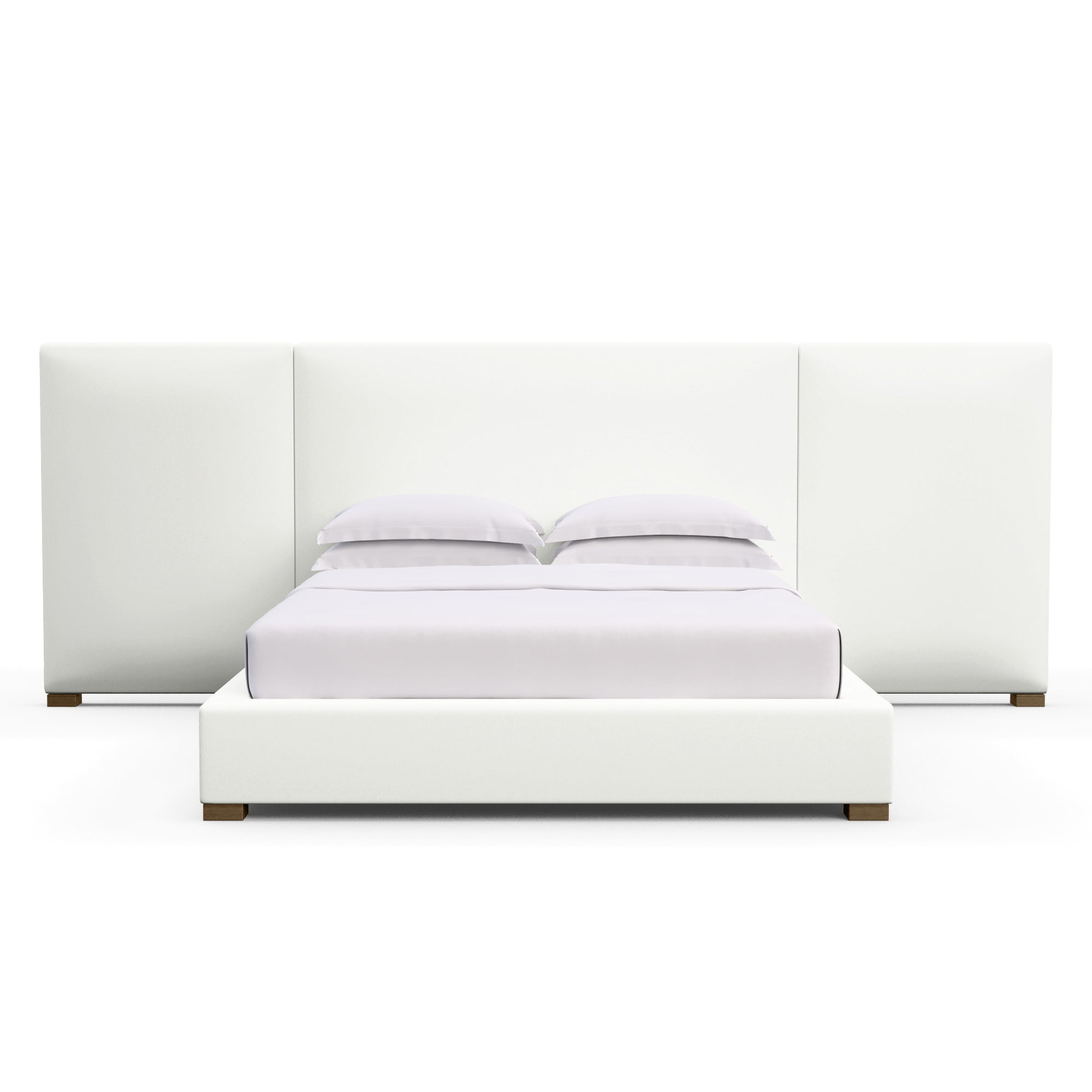 A play on balance and proportion, this platform bed is meant to be the centerpiece of your bedroom. The headboard, featuring crisp lines and hand-upholstered panels, extends on both sides to accommodate accent furniture. Anchored by square block feet, this piece is all about the sculptural details.