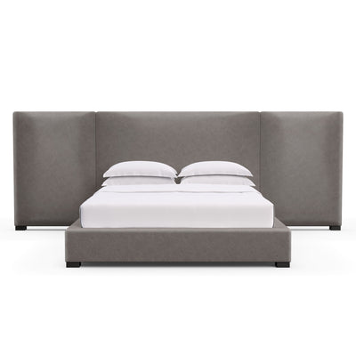 A play on balance and proportion, this platform bed is meant to be the centerpiece of your bedroom. The headboard, featuring crisp lines and hand-upholstered panels, extends on both sides to accommodate accent furniture. Anchored by square block feet, this piece is all about the sculptural details.