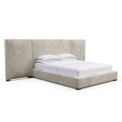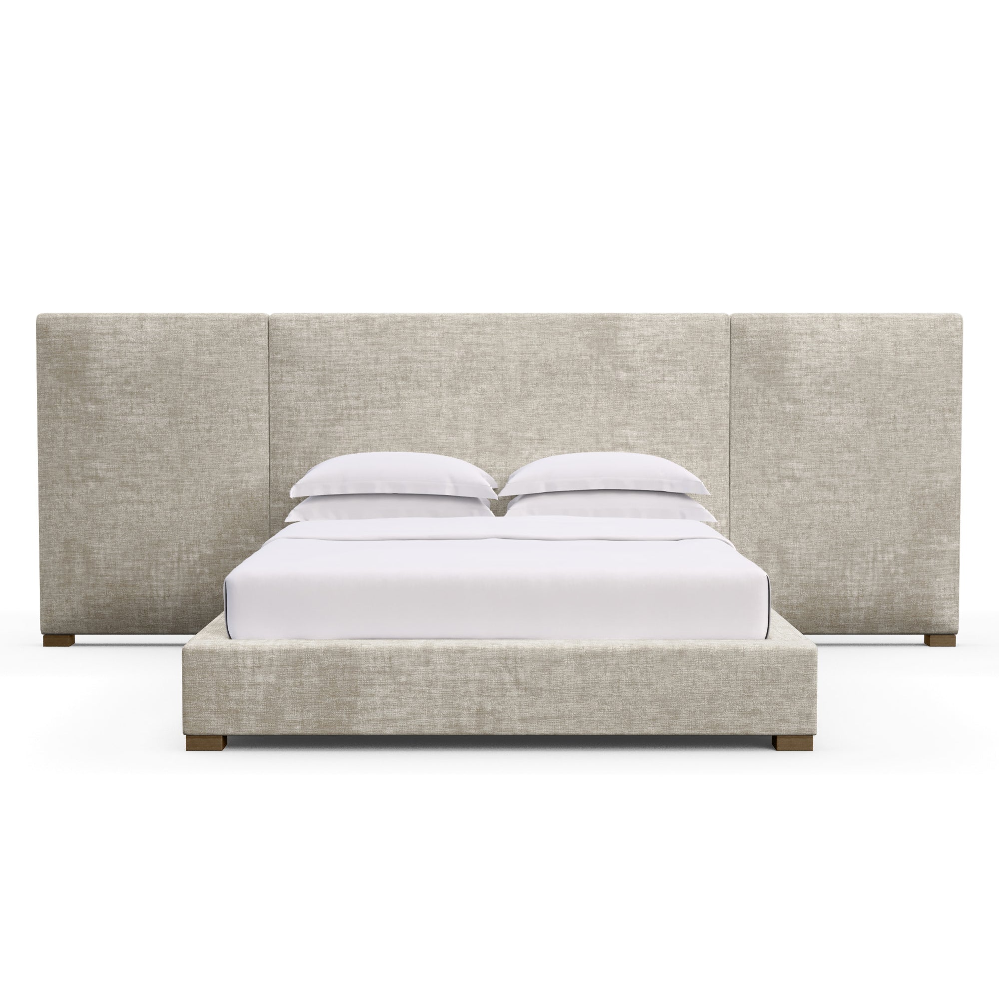 A play on balance and proportion, this platform bed is meant to be the centerpiece of your bedroom. The headboard, featuring crisp lines and hand-upholstered panels, extends on both sides to accommodate accent furniture. Anchored by square block feet, this piece is all about the sculptural details.
