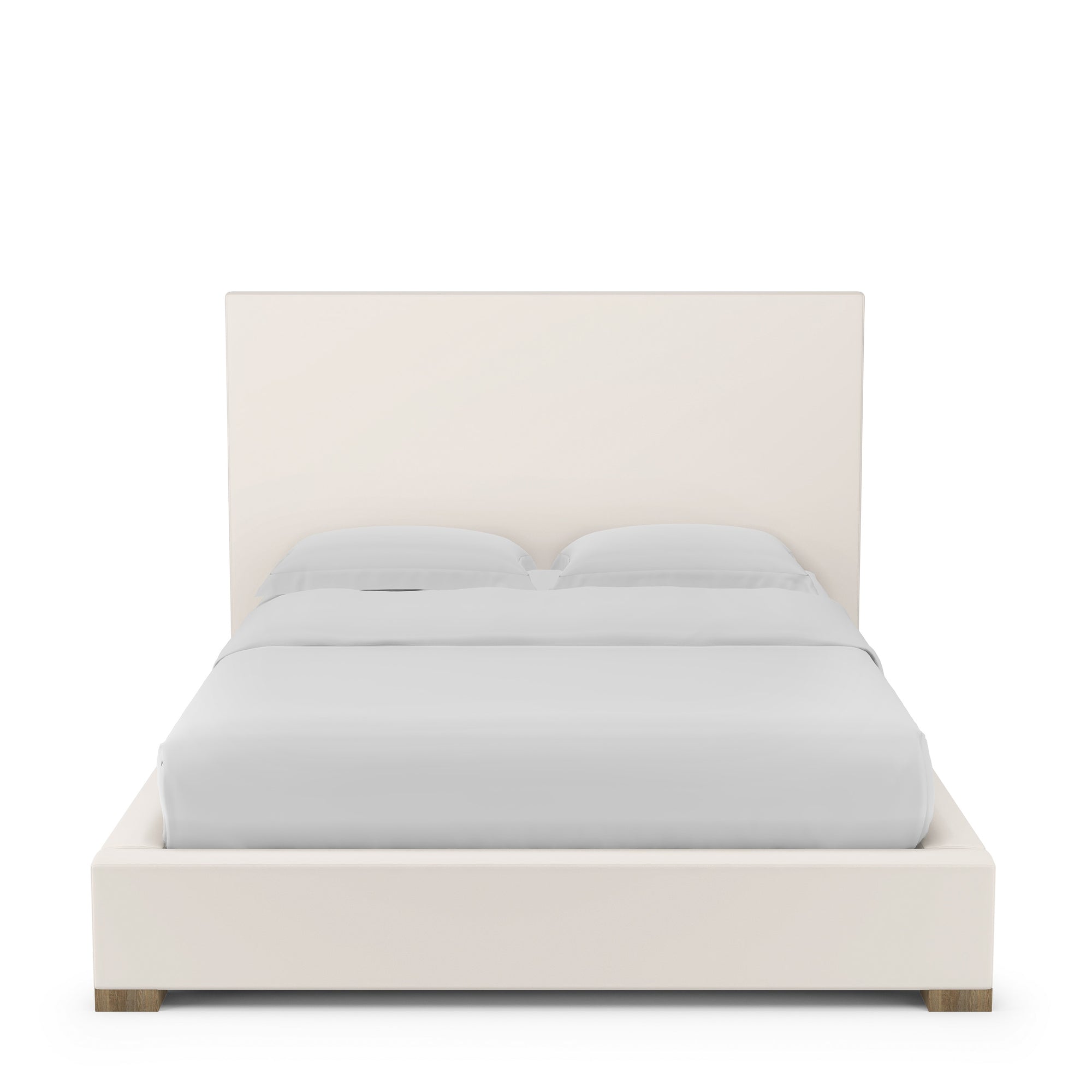 This low profile, sculptural panel bed has generously padded wide panels that are distinguished by crisp lines and smooth contours that are anchored by square block feet.