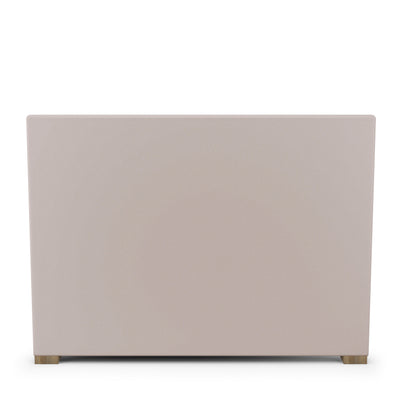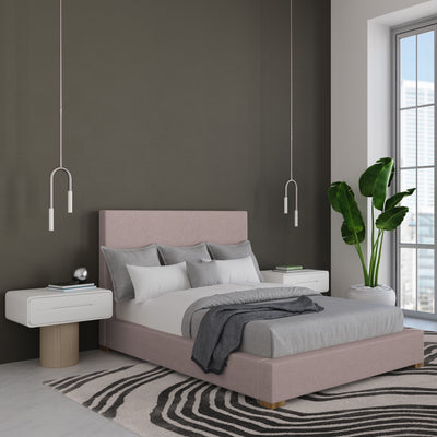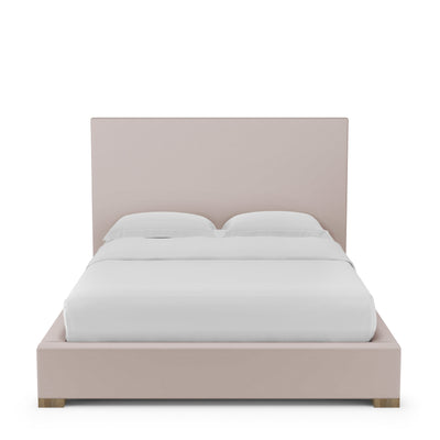 This low profile, sculptural panel bed has generously padded wide panels that are distinguished by crisp lines and smooth contours that are anchored by square block feet.