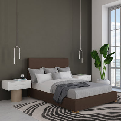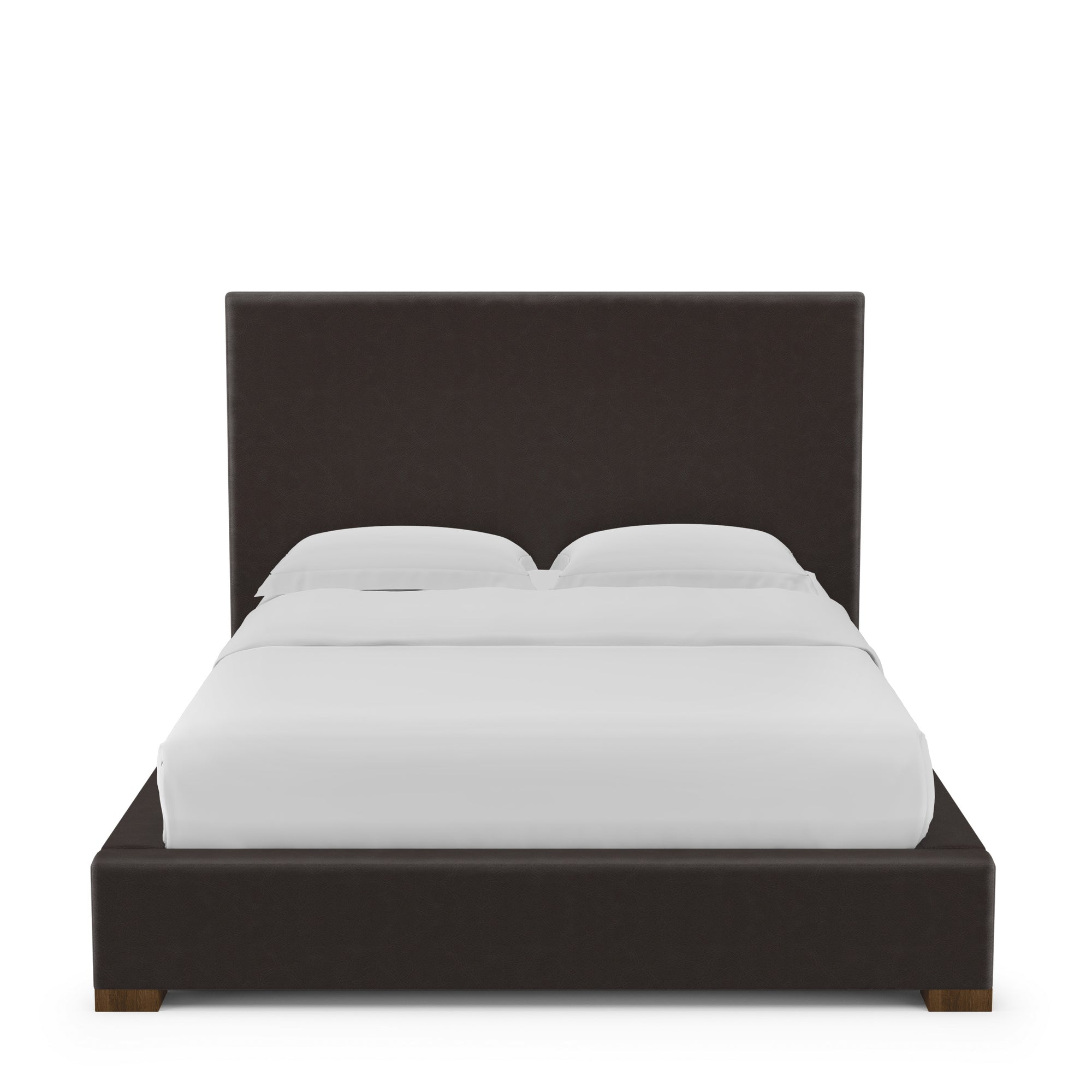 This low profile, sculptural panel bed has generously padded wide panels that are distinguished by crisp lines and smooth contours that are anchored by square block feet.