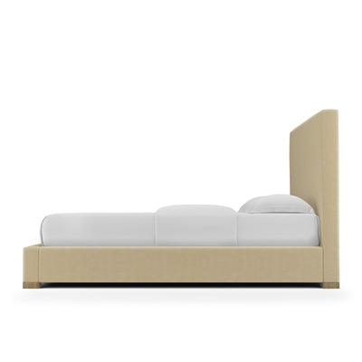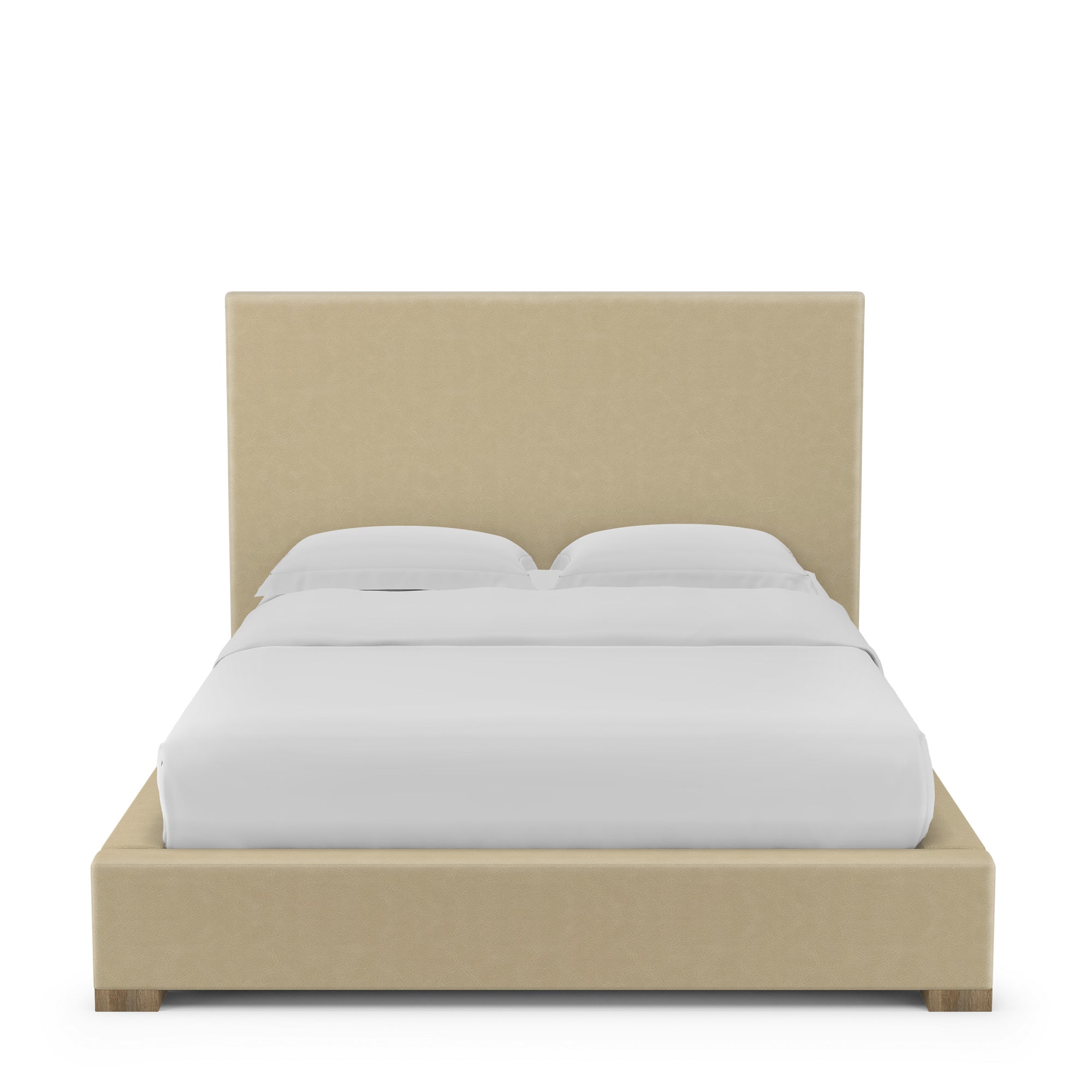 This low profile, sculptural panel bed has generously padded wide panels that are distinguished by crisp lines and smooth contours that are anchored by square block feet.