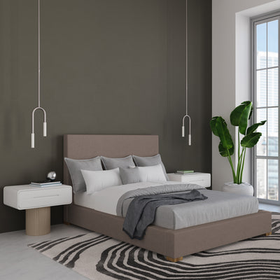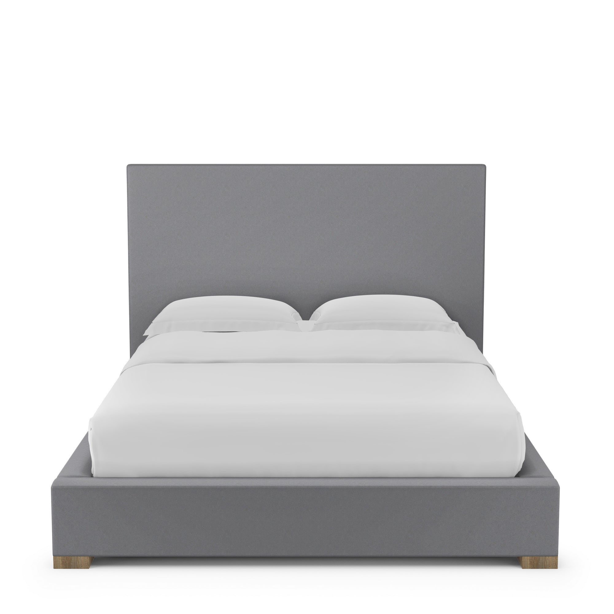 This low profile, sculptural panel bed has generously padded wide panels that are distinguished by crisp lines and smooth contours that are anchored by square block feet.