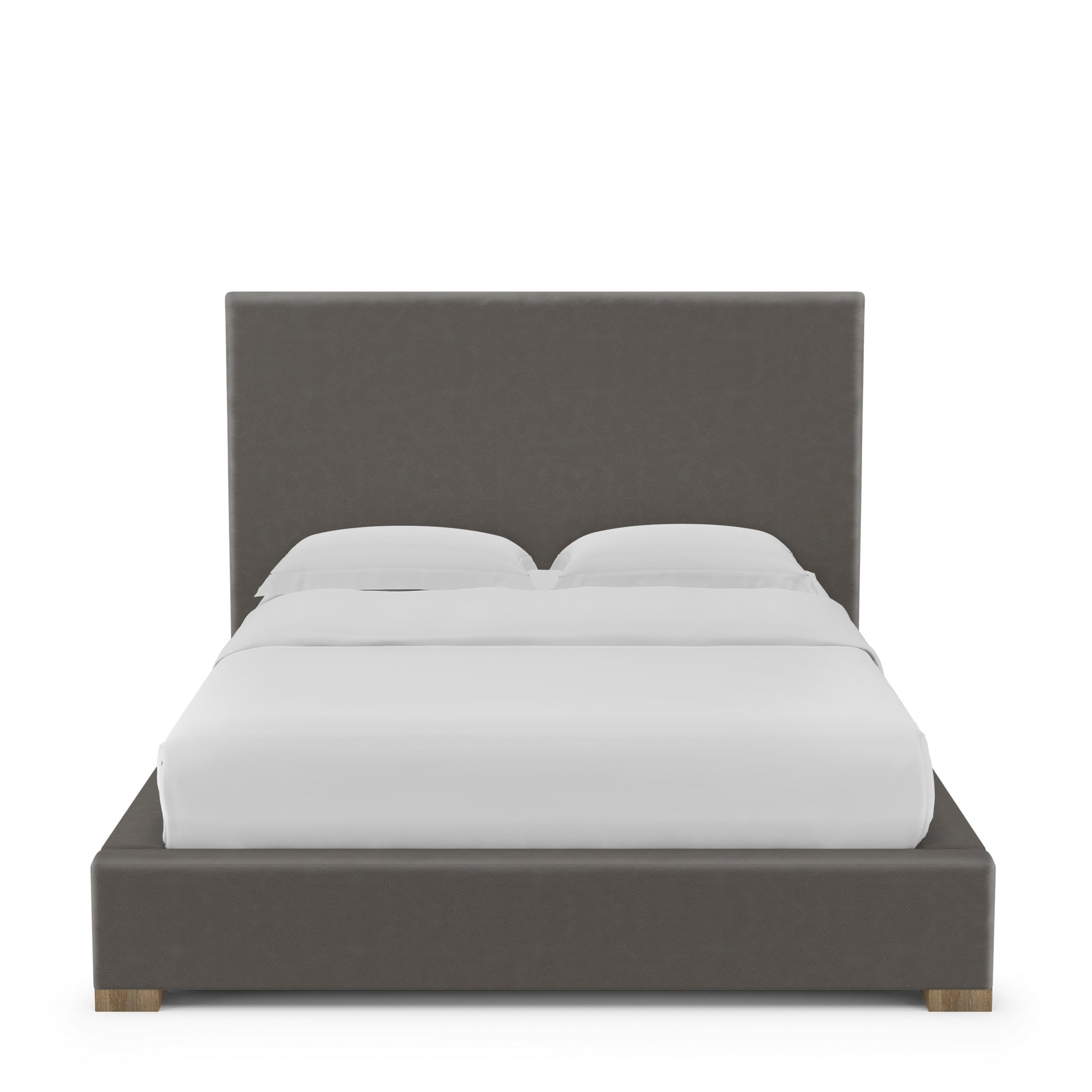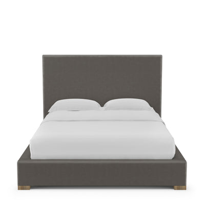 This low profile, sculptural panel bed has generously padded wide panels that are distinguished by crisp lines and smooth contours that are anchored by square block feet.