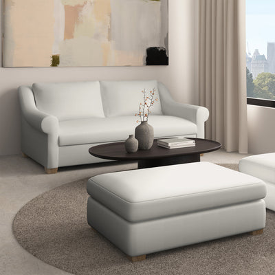 Find home in the Thompson Sofa. This sleek design is a new benchmark for modern home style with a traditional twist. Tactile sloped roll arms enclose the effortless comfort of its single bench seat. The neatly tapered square feet complete the look.