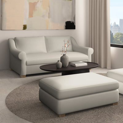 Find home in the Thompson Sofa. This sleek design is a new benchmark for modern home style with a traditional twist. Tactile sloped roll arms enclose the effortless comfort of its single bench seat. The neatly tapered square feet complete the look.