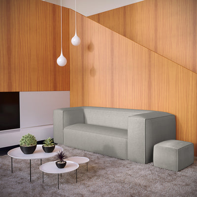Modern seat or modern art? This sculptural piece of furniture references cubist artworks in a highly practical modern form. Hand-stitched upholstery envelops a solid wood frame, with wooden feet so recessed they are barely visible. This cube appears to float, delivering a solid surface of pure comfort for contemporary homes.
