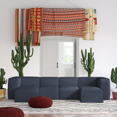 Varick U-Chaise Sectional - Blue Print Plush Velvet