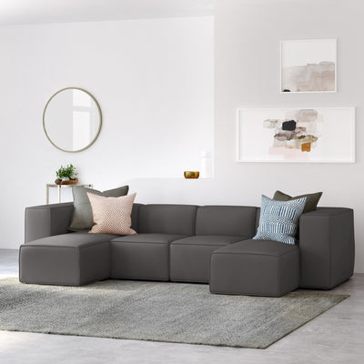 Varick U-Chaise Sectional - Graphite Vintage Leather