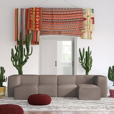 Varick U-Chaise Sectional - Pumice Box Weave Linen
